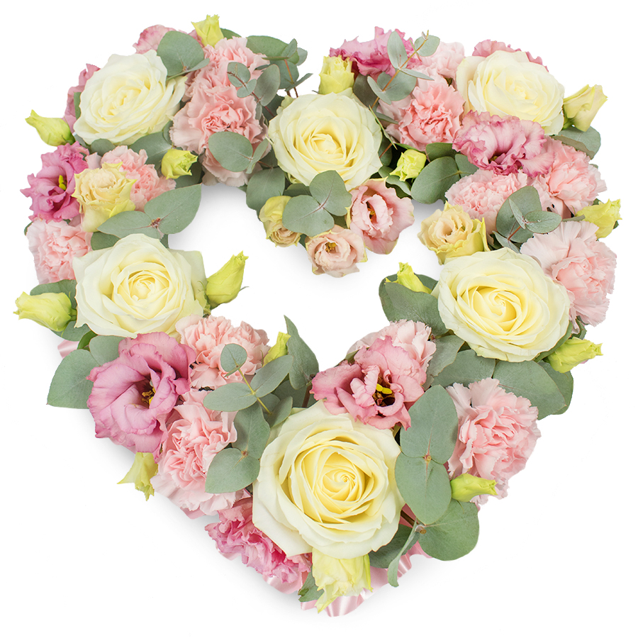Show your appreciation and love with our Serene Tribute Flower Arrangement. This elegant bouquet combines white roses, pink carnations, pink lisianthus, and soothing eucalyptus leaves, thoughtfully arranged to create a meaningful and beautiful tribute.